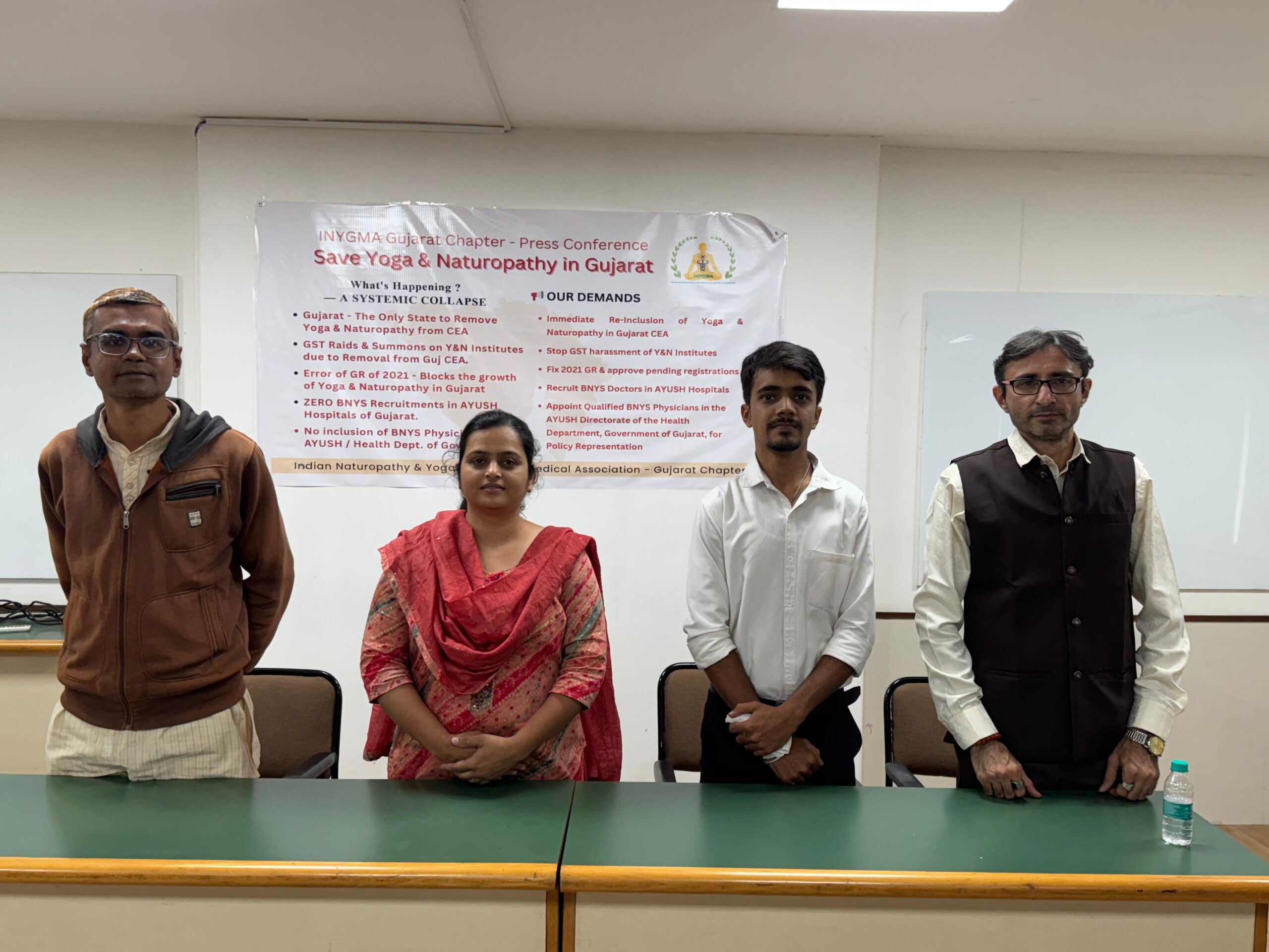 વડોદરા,નવેમ્બર 2025 : ઇન્ડિયન નેચરોપથી એન્ડ યોગ ગ્રેજ્યુએટ્સ’ મેડિકલ એસોસિએશન (INYGMA), ગુજરાત ચેપ્ટરે આજે રાજ્ય સરકારના નીતિ વિષયક નિર્ણયો પર ગંભીર ચિંતા વ્યક્ત કરી છે, જેના કારણે ગુજરાતમાં માન્યતા પ્રાપ્ત યોગ અને નેચરોપથી (BNYS) તબીબી પ્રણાલી ગંભીર જોખમમાં મુકાઈ ગઈ છે.