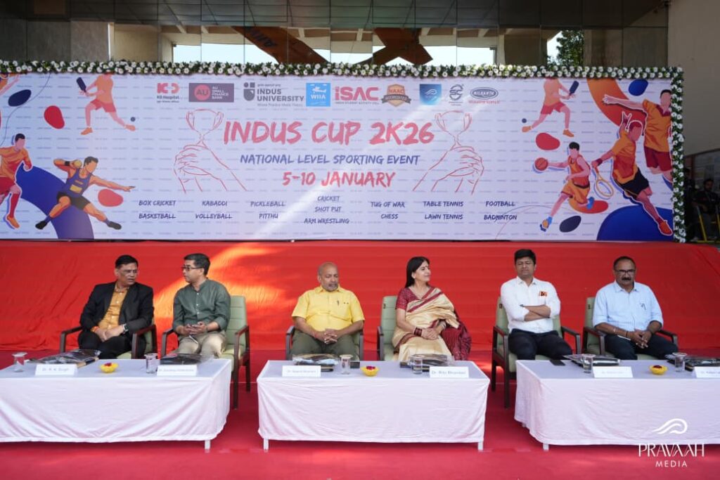 જાન્યુઆરી,2026,ઇન્ડસ યુનિવર્સિટી, અમદાવાદ ખાતે આજે રાષ્ટ્રીય સ્તરના પ્રતિષ્ઠિત આંતર-યુનિવર્સિટી રમતોત્સવ “ઇન્ડસ કપ 2K26” નો  ભવ્ય રીતે  ઉત્સાહસભર વાતાવરણમાં ઉદ્ઘાટન સમારોહ યોજાયો હતો.૦૫ થી ૧૦ જાન્યુઆરી ૨૦૨૬ દરમિયાન યોજાનાર આ ઇન્ડસ કપ સ્પર્ધાની શરૂઆત રંગબેરંગી અને ઊર્જાભર્યા ઉદ્ઘાટન સમારોહ સાથે થઈ હતી..